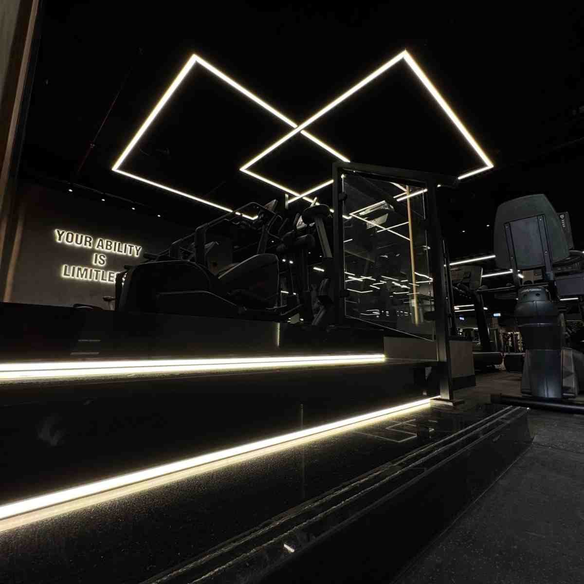 lighting to establish a strong visual rhythm throughout the gym. The interplay of