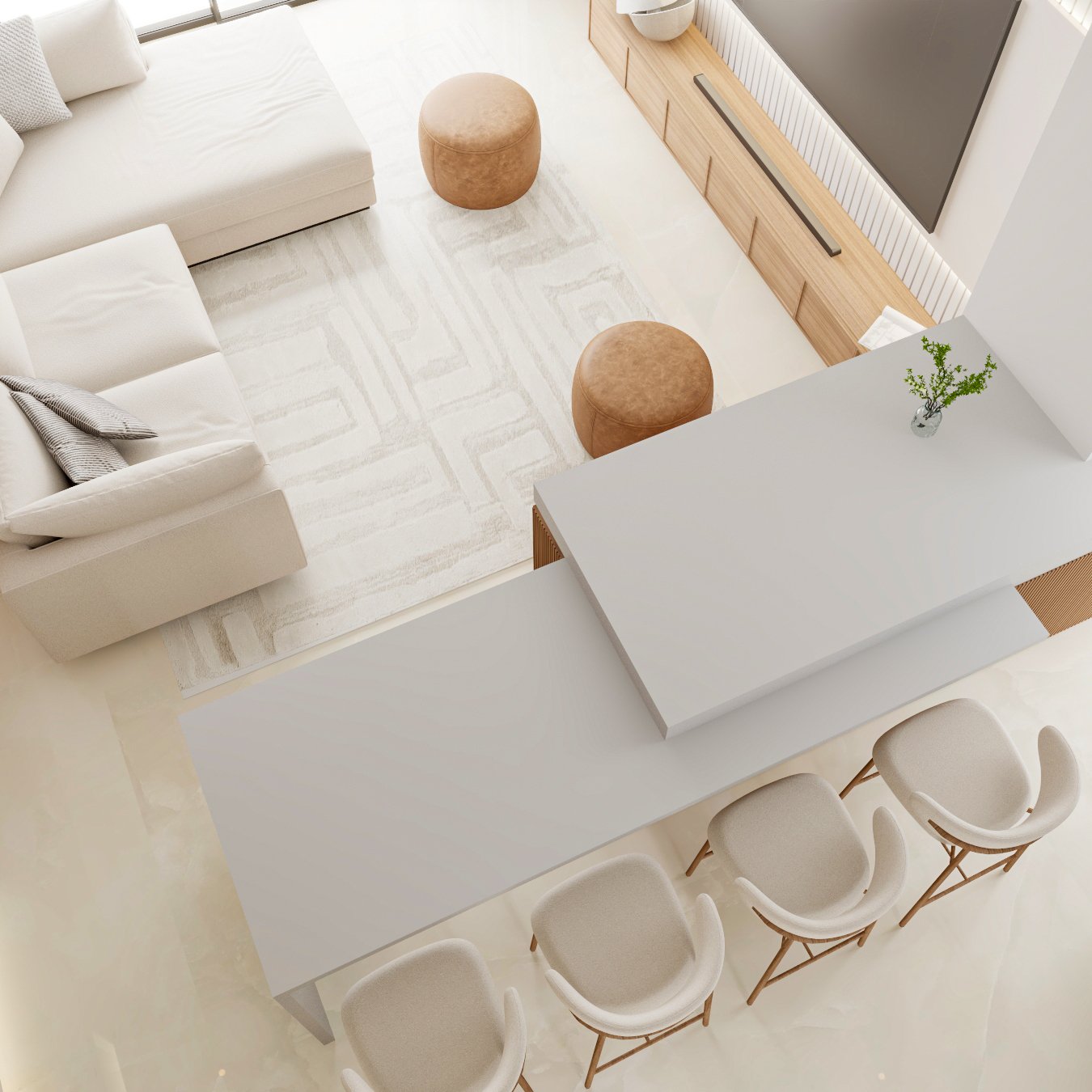 and lounge areas are visually connected yet subtly defined. Clean-lined