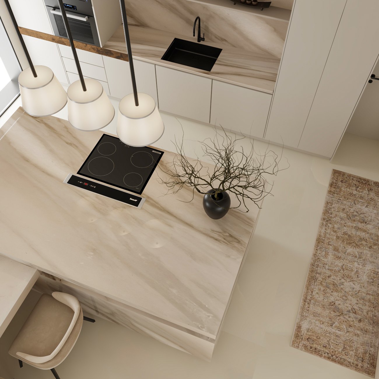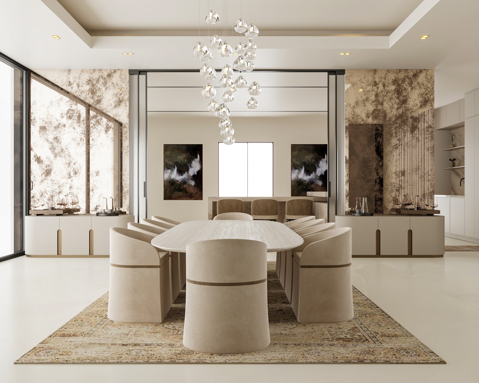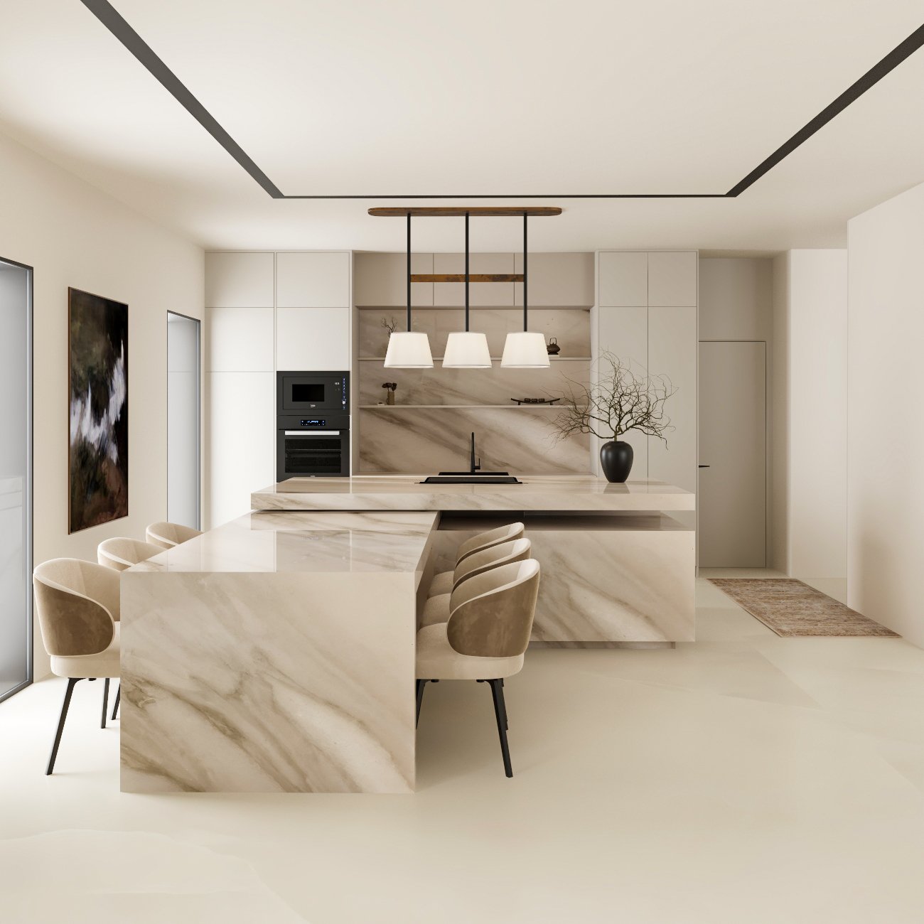 seamless material transitions, and a refined neutral palette enhanced through