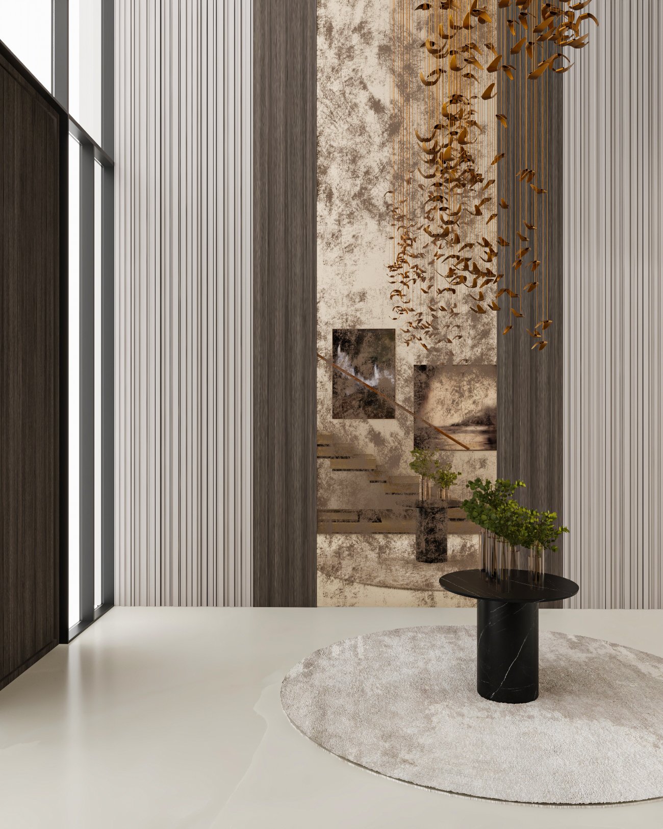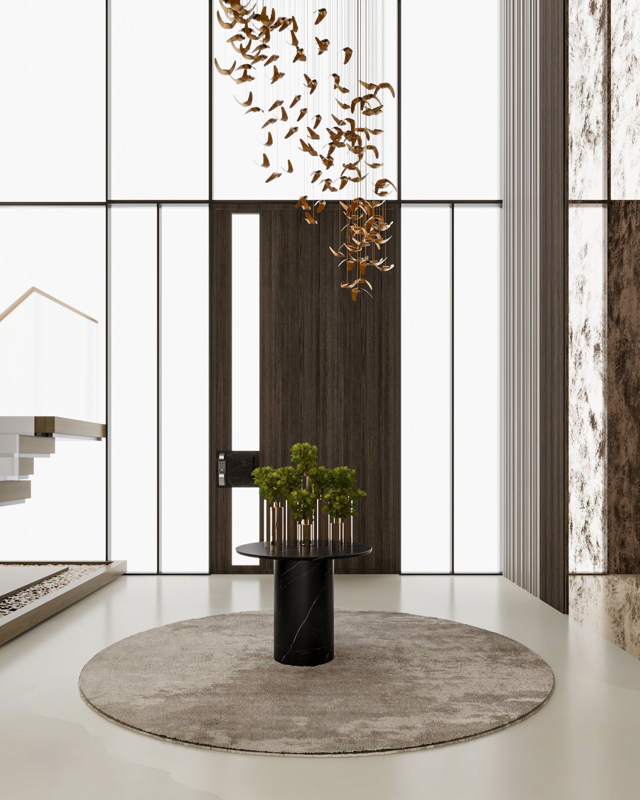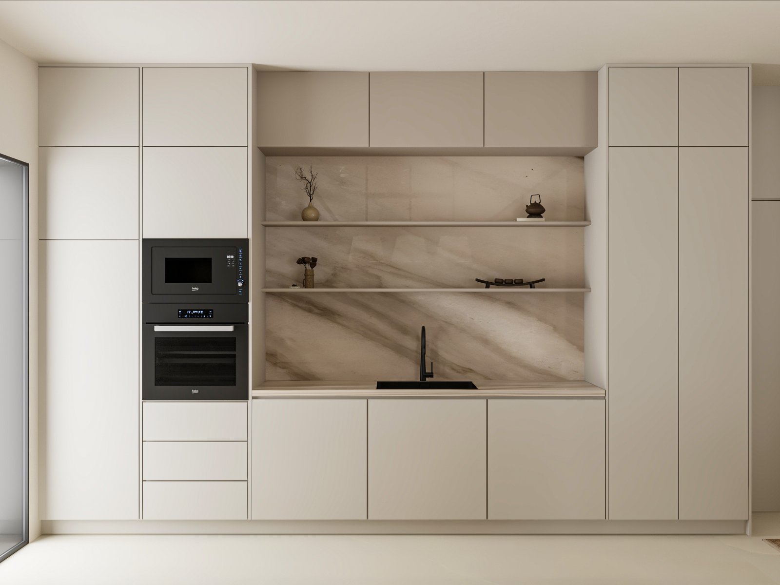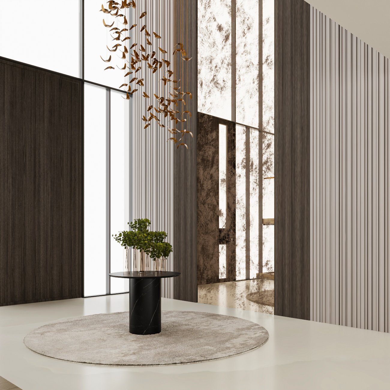seamless material transitions, and a refined neutral palette enhanced through