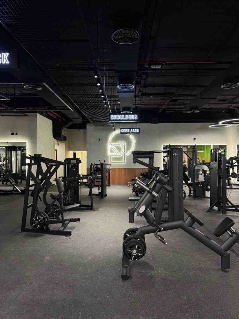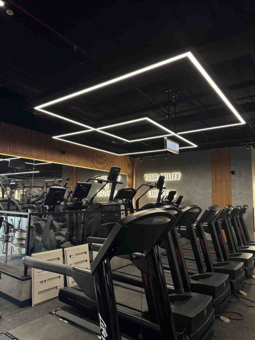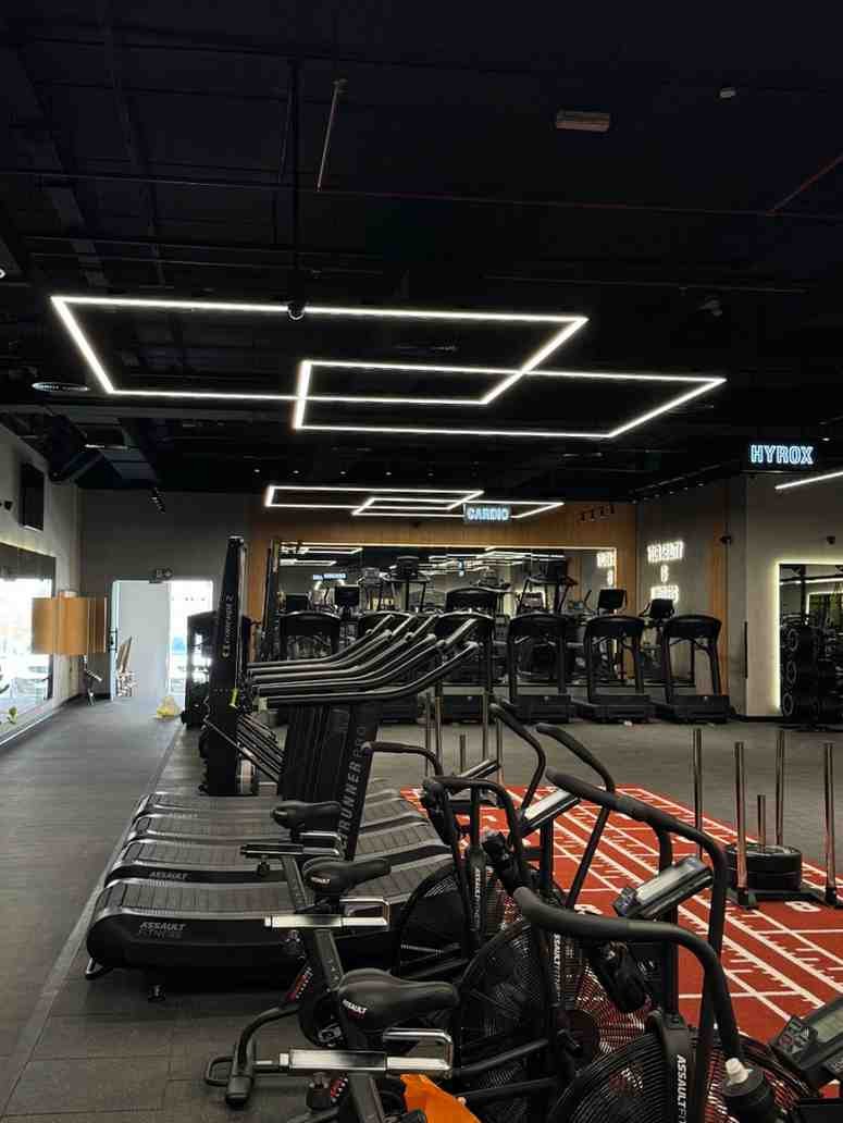 lighting to establish a strong visual rhythm throughout the gym. The interplay of