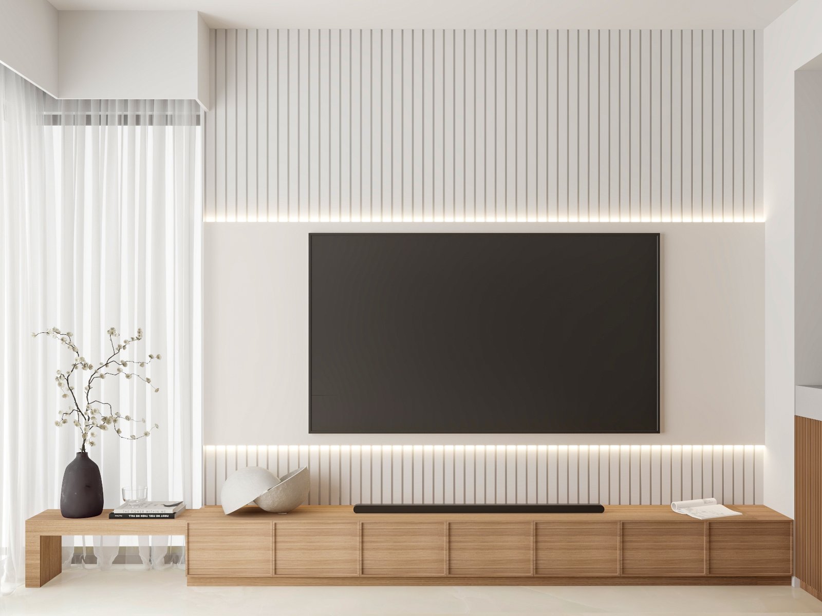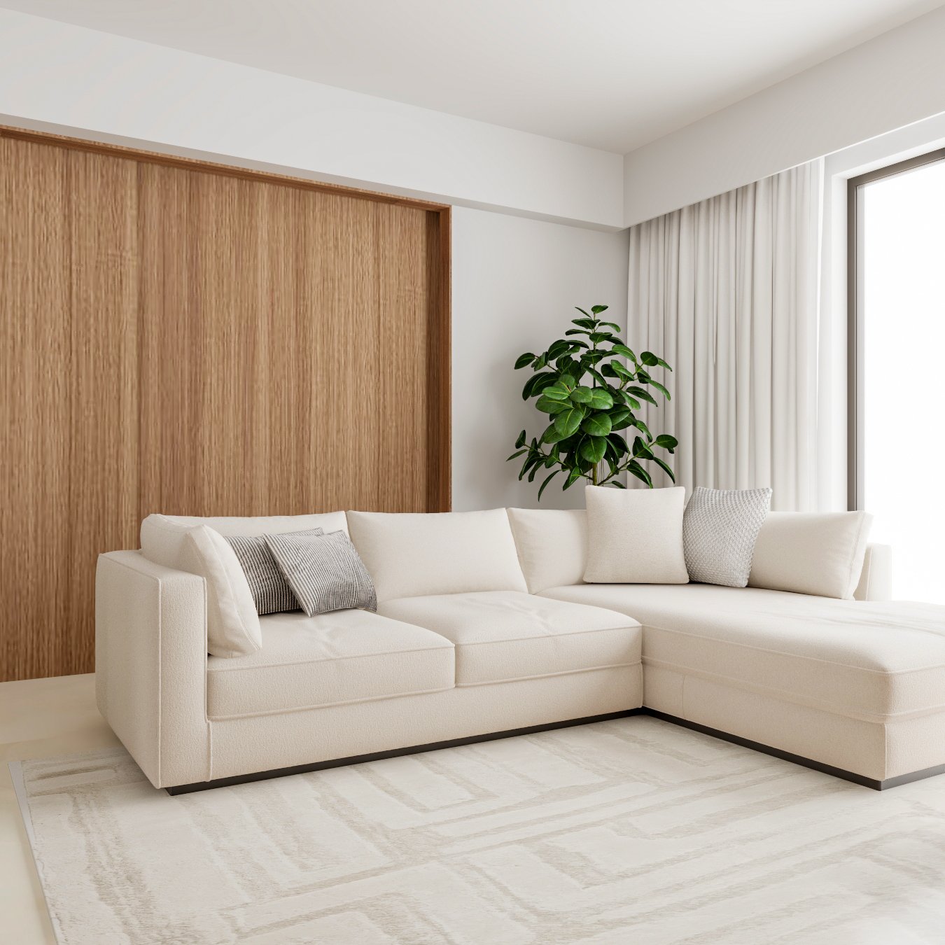 with warm wood accents, allowing natural light to move effortlessly across the