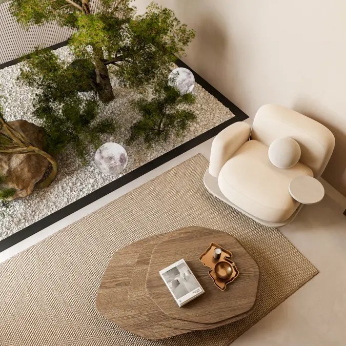 to design a space that embodies tranquility, balance, and rejuvenation. The
